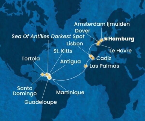 * a kötelező borravalót a hajóút végén(2016. június előtt induló hajóutak esetében: felnőtt és gyermek 15 éves kor felett: 9 euró/fő/éj, gyermek 4 - 14 éves kor között: 4,5 euró/fő/éj, 2016. júniusban és utána induló hajóutak esetében: felnőtt és gyermek 15 éves kor felett: 10 euró/fő/éj, gyermek 4 - 14 éves kor között: 5 euró/fő/éj, Karib-tengeri hajóutak esetében: felnőtt és gyermek 15 éves kor felett: 12,5 USD/fő/éj, gyermek 4 - 14 éves kor között: 6,75 USD/fő/éj)