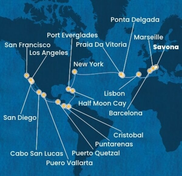 Costa Deliziosa – Olaszország, Franciaország, Spanyolország, Portugália, The Azores, Amerikai Egyesült Államok, Florida, Mexikó, Amerikai Egyesült Államok