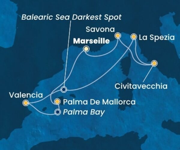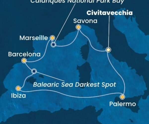 Costa Deliziosa – Olaszország, Franciaország, Spanyolország, Portugália, The Azores, Amerikai Egyesült Államok, Florida, Mexikó, Amerikai Egyesült Államok, Hawaii, Francia Polinézia, Fiji, Ausztrália, Japán, South Africa