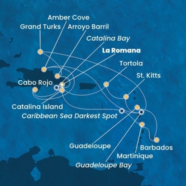 Costa Fascinosa – Dominikai Köztársaság, Turks szigetek, Holland Antillák (ABC-szigetek), Virgin szigetek