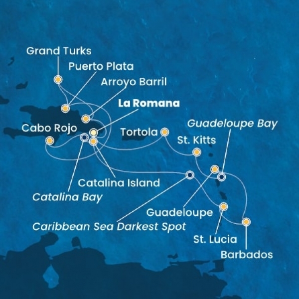 x Costa Fascinosa - Dominikai Köztársaság, Turks szigetek, Holland Antillák (ABC-szigetek), Virgin szigetek