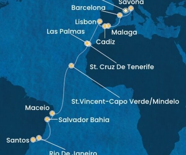 Costa Favolosa – Holland Antillák (ABC-szigetek), Kanári-szigetek, Marokkó, Spanyolország, Franciaország