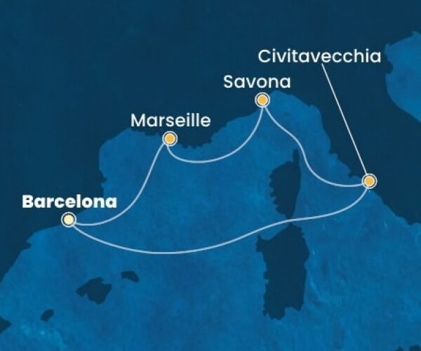 x Costa Favolosa - Holland Antillák (ABC-szigetek), Virgin szigetek, Kanári-szigetek, Marokkó, Spanyolország, Franciaország, Olaszország
