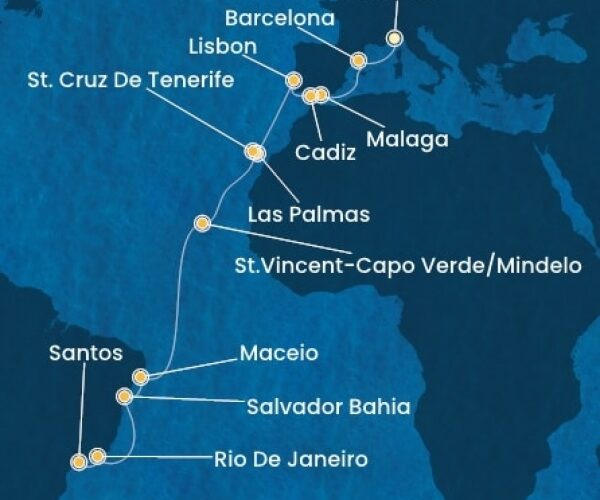 Costa Favolosa – Holland Antillák (ABC-szigetek), Virgin szigetek, Kanári-szigetek, Marokkó, Spanyolország, Franciaország